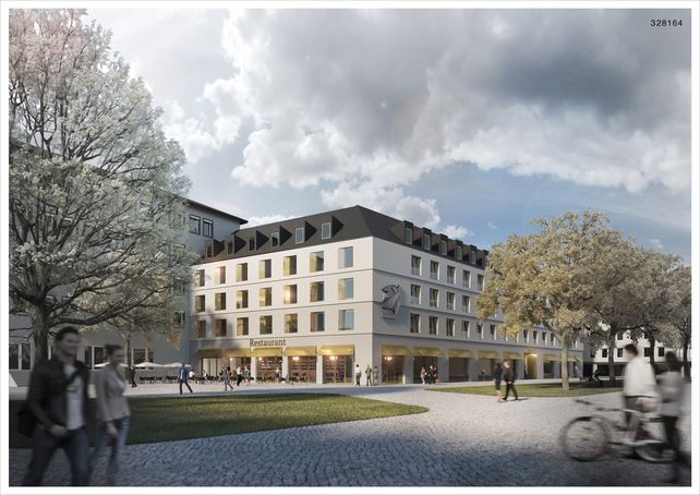 Das teils modernisierte und teils neu gebaute Ensemble besteht aus insgesamt acht miteinander verbundenen Gebäuden, die sich in Form einer Acht um zwei Innenhöfe gruppieren. Im Rahmen des Projektes wurden Bestandsgebäude kernsaniert und saniert sowie Teile des Ensembles neu errichtet: Der am Paradeplatz 4 gelegene u-förmige Nachkriegsbau aus den 1950iger Jahren wurde durch ein komfortables, energieeffizienteres Gebäude ersetzt, dessen Fassade sich harmonisch ins historische Stadtbild einfügt. Die Fassade des neu errichteten Gebäudes wird ein wohlbekanntes Schmuckstück zieren: Die Phoenix-Plastik des Bildhauers Julius Bausenwein aus dem Jahr 1957. Das Kunstwerk wurde vom alten Nachkriegsbau aufwändig entfernt und restauriert.