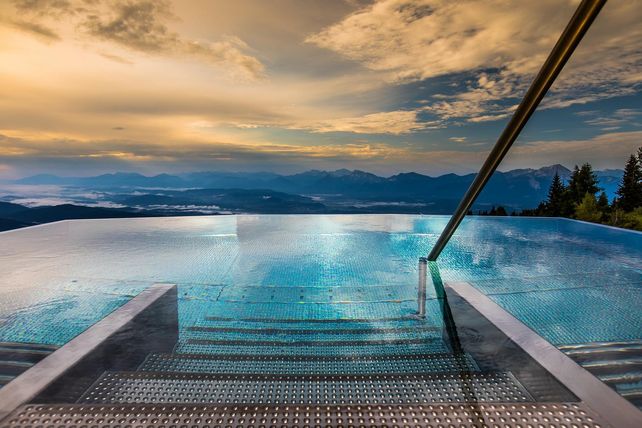 Nach vier Monaten Bauzeit ist das neue Badehaus „Sonnenbad“ des Mountain Resort Feuerberg in Österreich im August für alle Gäste eröffnet worden. Der Wellnessbereich bietet nun drei weitere Pools – zwei Indoor-Pools und einen Infinity-Pool. Dieser schwebt dabei in luftiger Höhe inmitten der Glasfassade des Badehauses. Zudem warten die Kinderbadewelt „Aquafix“ und eine 40 Meter lange Wasserrutsche auf Besucher.