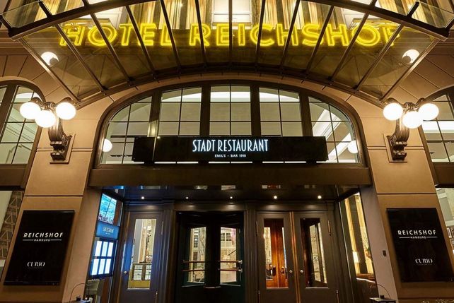 Noch immer erhalten ist das Herzstück des Hauses – das „Stadt Restaurant“. Hier kocht Küchenchef Mario Regensburg mit seinem Team typisch deutsche Gerichte und internationale kulinarische Highlights. Im Fokus steht dabei immer der Rhythmus der Natur, denn in der hoteleigenen Küche wird großer Wert auf regionale Zutaten in Bio-Qualität gelegt. Damit das Team vom Reichshof Hamburg immer am Puls der Zeit bleibt, ist es immer im Austausch mit jungen und regionalen Unternehmen, die nachhaltig und fair gehandelte Lebensmittel anbieten.