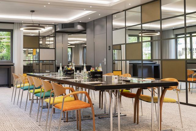 Vier weitere Tagungsräume wurden ebenfalls modernisiert und mit einem neuen Beleuchtungskonzept ausgestattet. Im Rahmen der Modernisierungsmaßnahmen wurden auch neue Zugänge zu den Außenbereichen geschaffen. Wände und Decken wurden neu gestaltet, eine automatische Fensterverdunklung eingebaut und ein Touchpanel zur Einstellung des Lichts installiert.