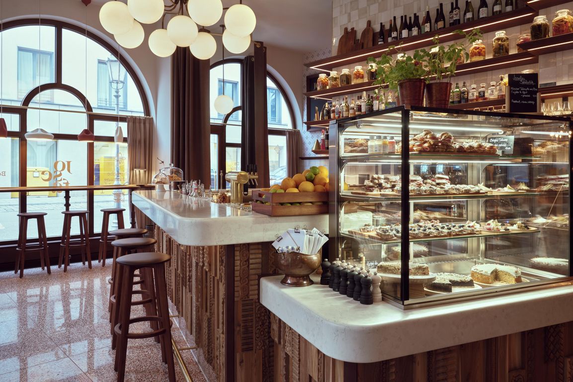 Zutaten und Produkte von lokalen Erzeugern und Lieferanten sollen der neuen Josefa einen ganz eigenen, original Münchner und doch weltoffenen Charakter verleihen. Lebensfreude werde zum Erlebnis bei handverlesenem Espresso der Marke Dallmayr, Apero und einem Glas Wein sowie Fingerfood, Kuchen, belegten Broten und Frühstücks-Bowls, erklärte das Unternehmen zur Eröffnung. Die mit Altholz verkleidete Barfront bildet das zentrale Möbelstück im Raum.
