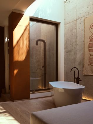 Die Gestaltung der Suiten differenziert sich: eine ist heller und offener; die andere ist dunkler und konzentrierter, mit erdigen Farbtönen. Ziel ist es, ein Gleichgewicht zwischen Ruhe und Energie, zwischen Geborgenheit und Offenheit zu schaffen.