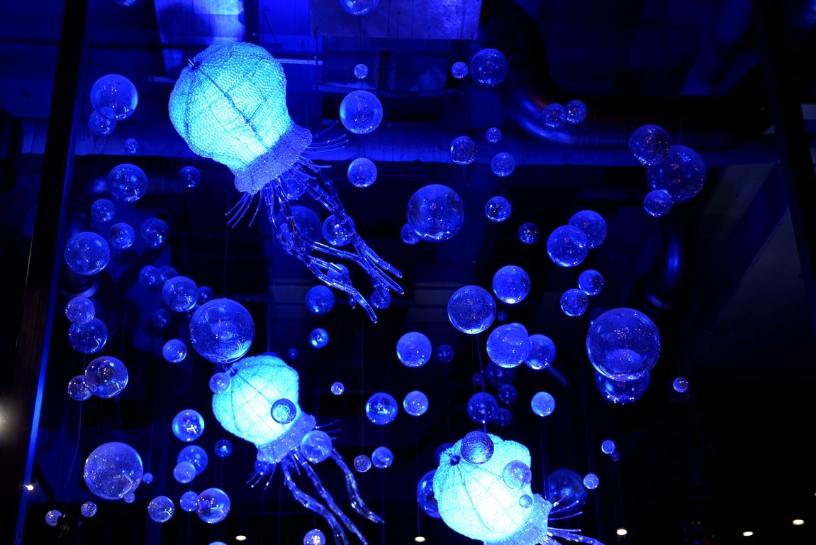 Ein Highlight ist die Lichtinstallation in Form von drei Quallen aus klaren Kristallperlen und 100 mundgeblasenen Kristallkugeln in verschiedenen Größen über der Nautilo-Bar, die sich jetzt vor dem Restaurant befindet. Das submarine Design spiegelt sich auch im Restaurant wider, etwa durch eine Sitznische mit acht Plätzen in Gestalt eines U-Boots.