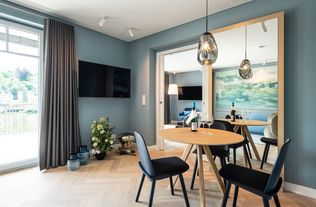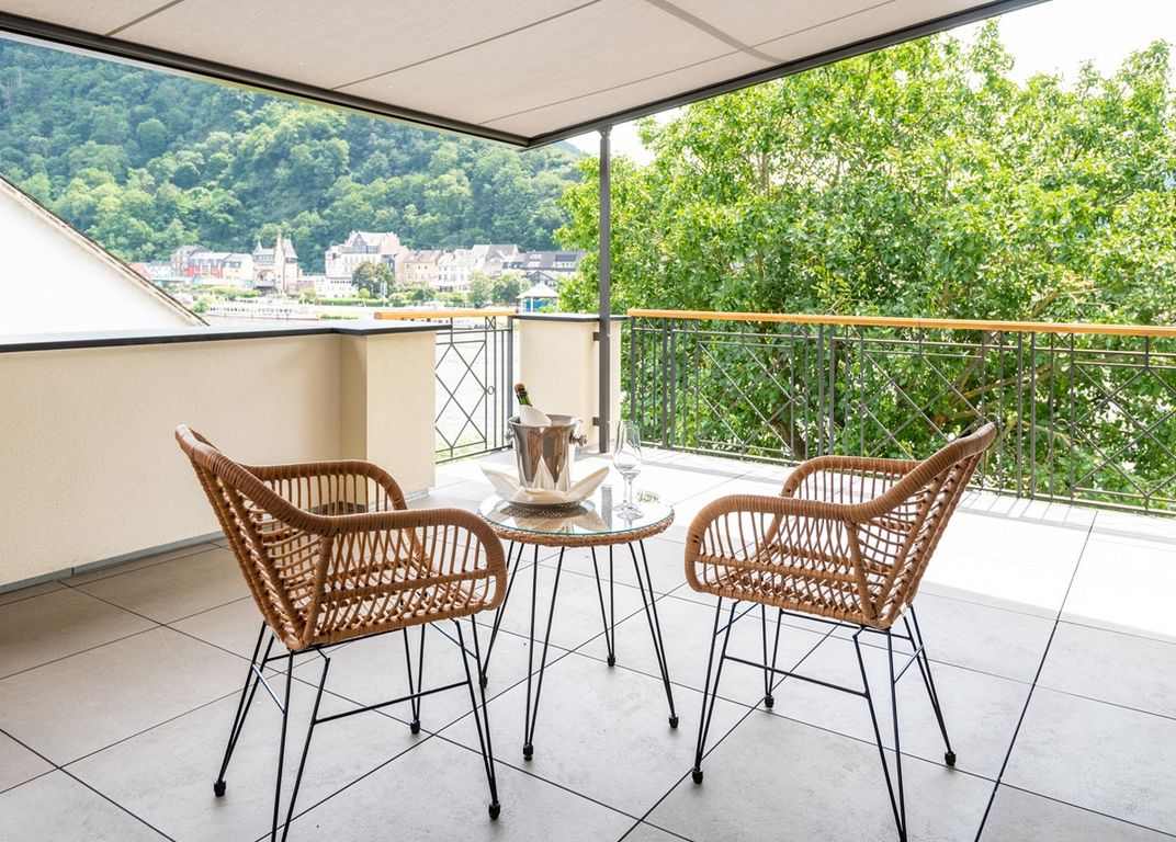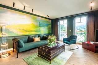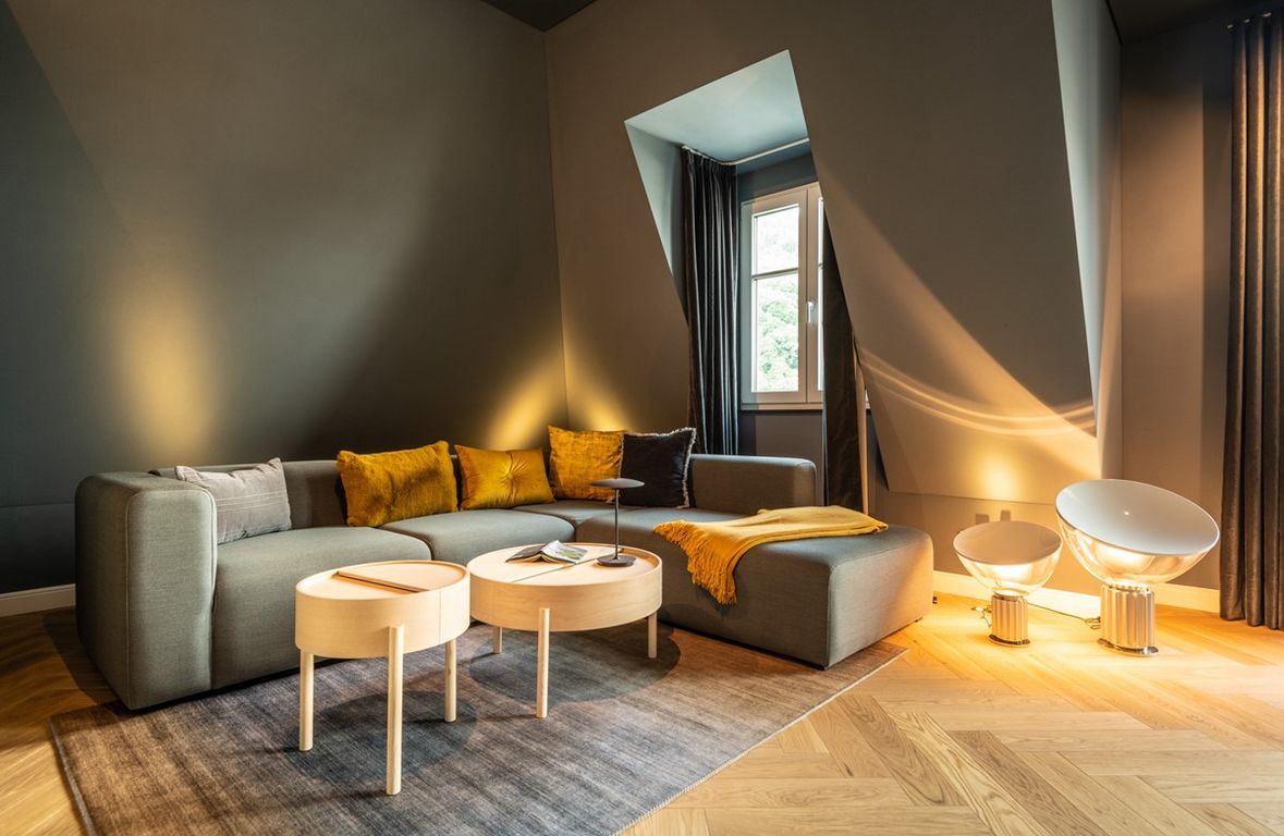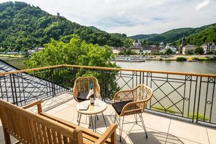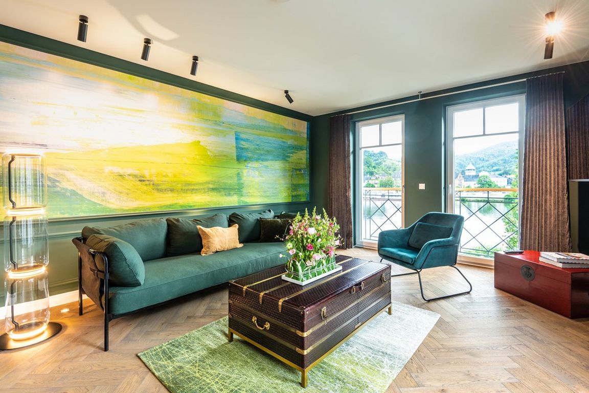 Die Suiten mit Größen zwischen 70 und 170 qm, alle mit Moselblick und Balkon, liegen in einem neu erbauten Gebäude mit historisierenden Elementen in der ‚Front Row‘ am Fluss. Jede Etage ist in einer anderen Farbfamilie gestaltet, auch hier wurde die typische Lust an tiefen Farbharmonien der Belle Époque aufgegriffen. Im Einzelnen: Literaturkabinett, Belle Époque und Musikkabinett im Erdgeschoss. Reisekabinett, Blütezeit und Wanderkabinett im 1. OG. Kunstkabinett, Wasserkabinett und Architekturkabinett im 2. OG. Weltfahrt im Penthouse.