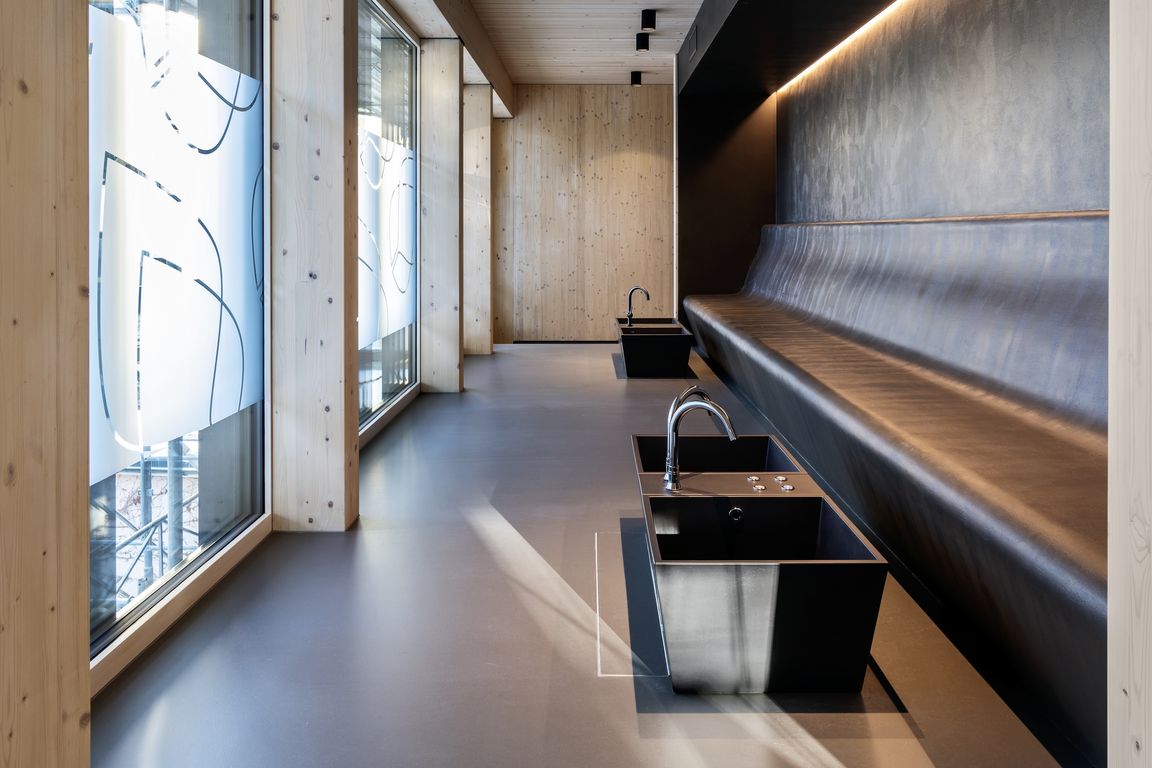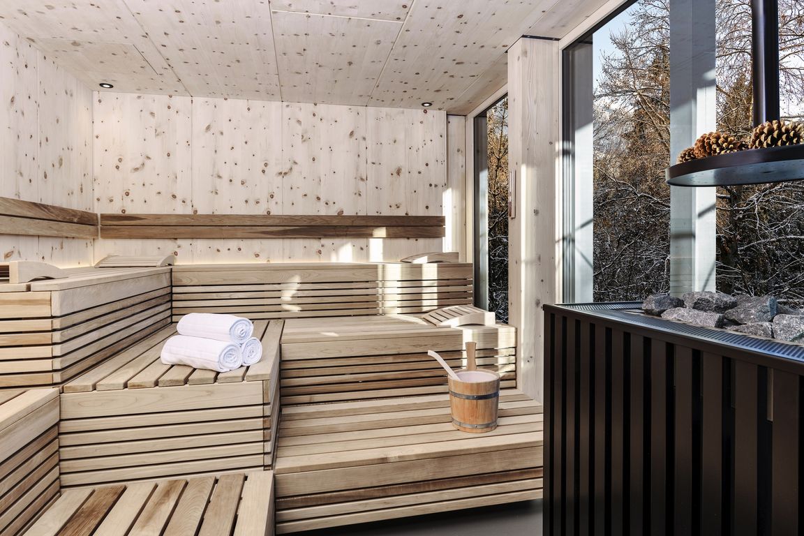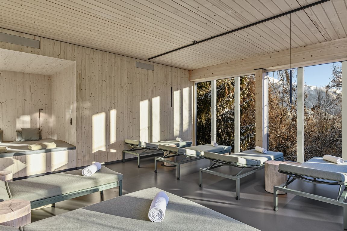 Was Gäste nun auf drei Etagen und 750 Quadratmetern vorfinden, ist eine finnische Sauna mit Blick auf den Flimserstein, eine Bio-Arvensauna, eine Infrarotsauna, ein Dampfbad und Salzpeeling. Dazu kommen Ruhe- und Erholungsräume sowie der Waldraum. Alles aus unbehandeltem Fichtenholz, Stein und natürlichen Harzen. Der Waldraum ist künftiger Ort für Yoga-, Meditations- und Pilates-Lektionen, aber auch für Tagungen und Workshops im Rahmen von Business-Seminaren. Hier wird Wellbeing in all seinen Facetten erlebt.