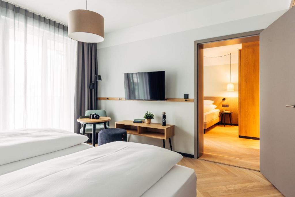 Das Haus verfügt über modern eingerichteten Zimmer, begehbaren Kleiderschränke, Balkone und Apartments mit eigener Küche. Kinder toben sich im Kinderspielzimmer aus, für Geschäftsreisende gibt es einen Tagungsraum und Co-Working-Möglichkeiten in harry’s Wohnzimmer.