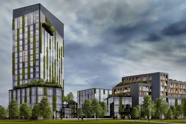 Die weiteren Gebäude bieten Raum für moderne, flexible Arbeitswelten – ergänzt durch Flächen für Gastronomie und Wohnen. Bestandteil der Projektentwicklung ist außerdem ein quartierseigenes Parkhaus mit 649 Stellplätzen und E-Ladestationen für PKWs. Darüber hinaus entstehen soziale Infrastrukturen wie eine Kindertagesstätte und Bildungsangebote, Nahversorgungsmöglichkeiten, Angebote für Freizeit und Sport sowie großzügige Grün- und Freiflächen.