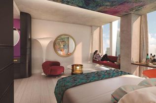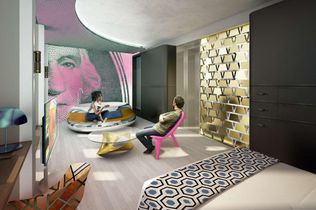 14 Stockwerke der insgesamt 47 Etagen des Wolkenkratzers bieten Geschäftsreisenden und Touristen mit 375 Zimmer Raum und Anregung zum Austausch. Dank des Interior Designs des renommierten, spanischen Architektenbüros Rafael de La Hoz und des Mural-Artisten David Zuker, finden sich im gesamten Haus großflächige, künstlerisch interpretierte Geldschein-Motive an Wänden und Decken, die poppig abgebildet werden.