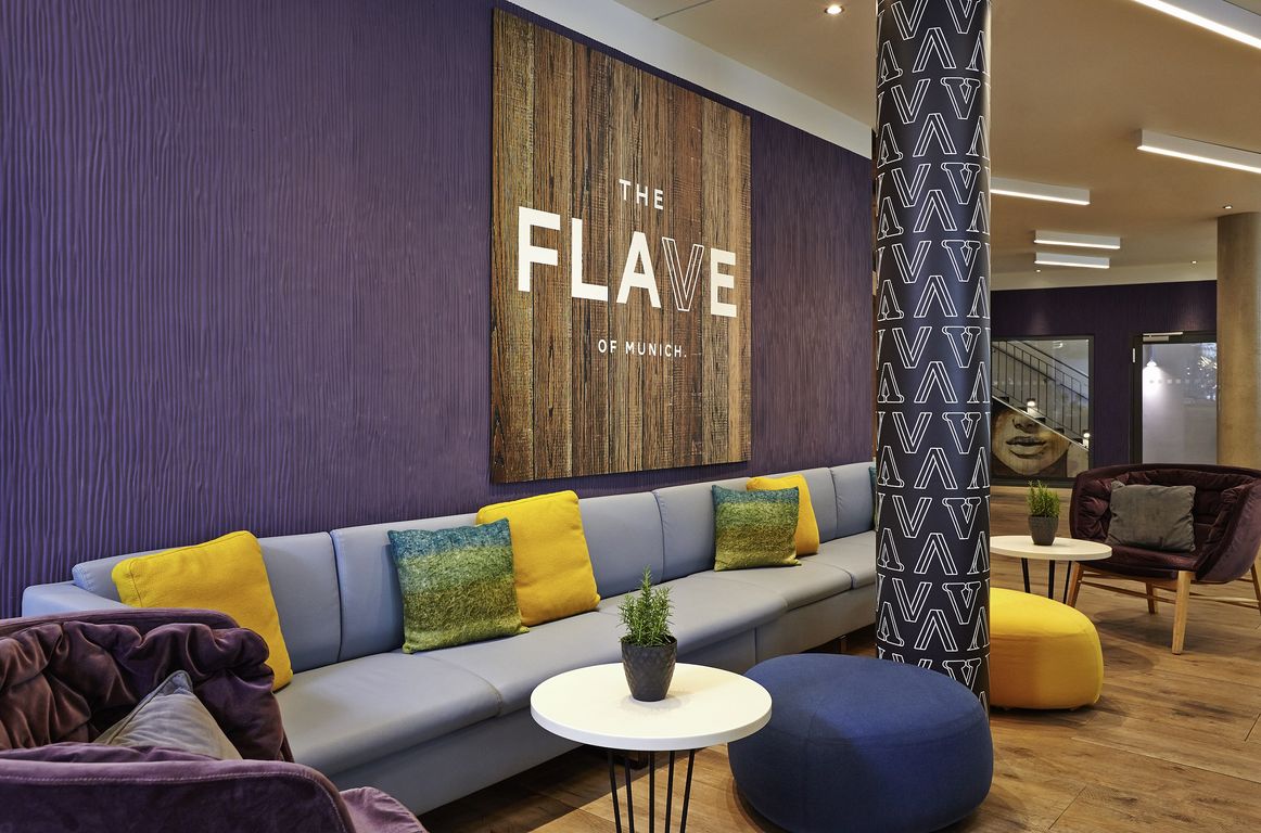 Runde Formen und weiche Kanten treffen auf klare Linien und Farbakzente in Grün und warmen Grau- und Brauntönen, eingetaucht in eine warme Lichtatmosphäre. Ergänzend dazu wurde auch das Frühstücksrestaurant des Hotels erneuert. Insgesamt verfügt das Hotel nun über 378 Zimmer inklusive zweier Suiten, einem Wellnessbereich mit Sauna, Swimmingpool und Fitnesscenter, dem Restaurant The Flave of Munich, sowie ein Konferenzzentrum.