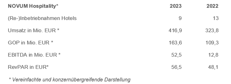 Mit einem Gesamtumsatz von 416,9 Millionen Euro schließt Novum Hospitality das Geschäftsjahr 2023 erfolgreich ab und verzeichnet – im Vergleich zum Vorjahr – eine Umsatzsteigerung von rund 29 Prozent. Das in 2023 erzielte EBITDA der Gruppe liegt bei 52,5 Millionen Euro, der RevPAR bei 56,5 Euro und der GOP bei 163,6 Millionen Euro. Die vorteilhafte Geschäftsentwicklung resultierte vordergründig aus der (Wieder-)Inbetriebnahme neuer und revitalisierter Hotels mit insgesamt 1.239 Zimmern, dynamischen Ratenstrukturen, einem strikten Kostenmanagement, einer guten Gesamtauslastung sowie einem insgesamt positiven Marktumfeld.