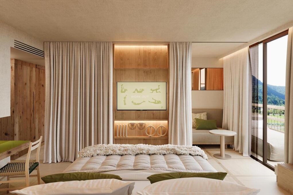 Die heimische Gipfelwelt mit ihren Bergsport-Legenden fungiert auf allen Ebenen als Inspirationsquelle, auch für das Design des ebenfalls aus Südtirol stammenden Matteo Thun. Ein hoteleigener Experience Concierge bespielt das Thema Berge 365 Tage im Jahr mit einem umfangreichen Aktivangebot, maßgeschneiderten Touren und individuell gestaltetem Sportprogramm. Für Kletterbegeisterte steht außerdem eine Indoor- und Outdoor-Kletterwand zur Verfügung.