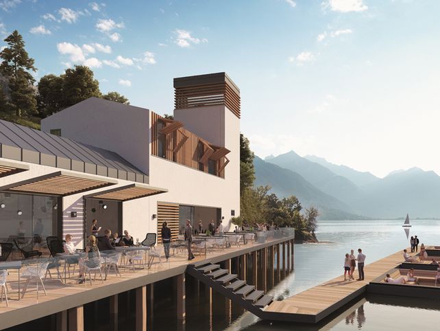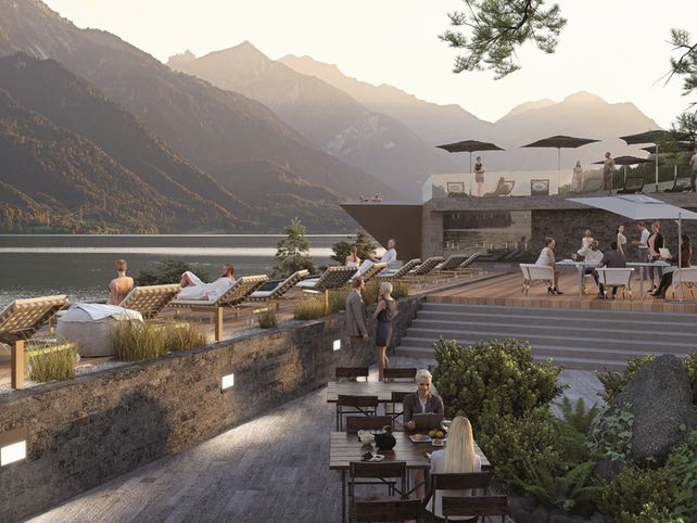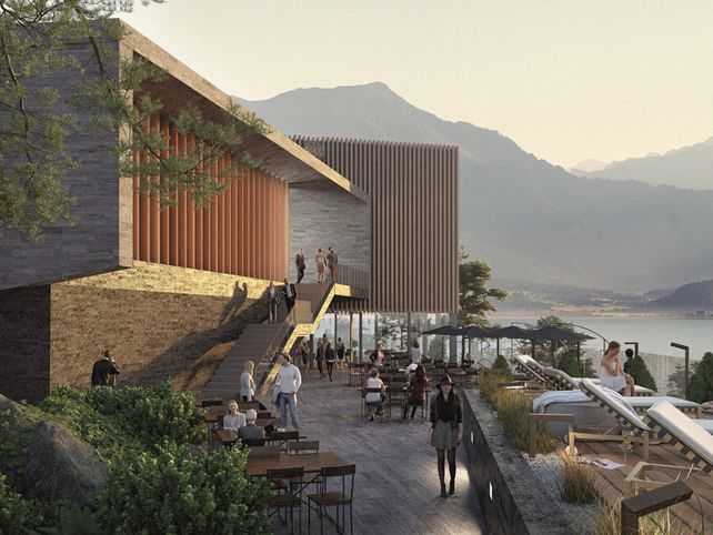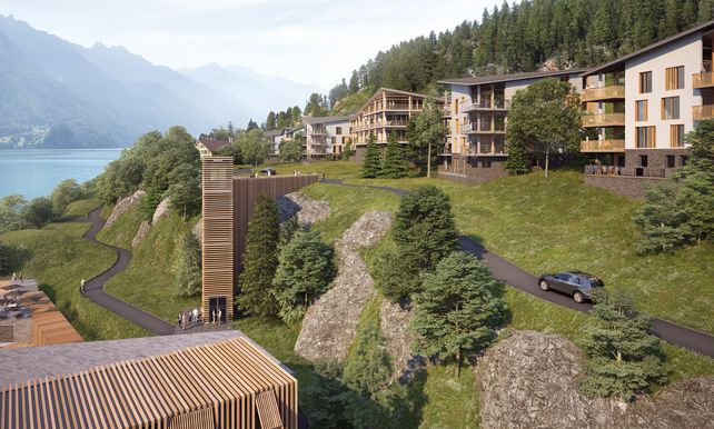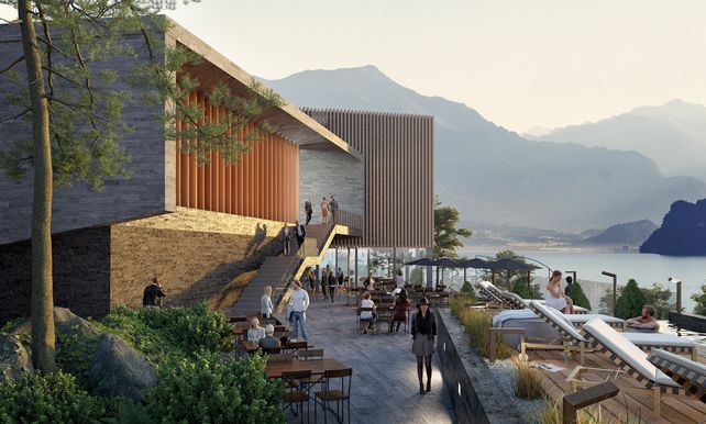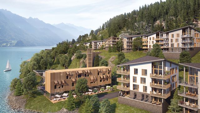 Durch die unmittelbare Lage am See eignet sich das Hotel für Ferien am Wasser oder in den Bergen sowie für Wintersport. Für das leibliche Wohl der Gäste werden zwei Restaurants und Bars sorgen, ein Kongresszentrum, ein Infinity-Pool und andere Wellnesseinrichtungen kommen auch noch hinzu. Wollen die Gäste selbst kochen, ist das ebenfalls möglich. Dazu müssen sie nicht einmal die Anlage verlassen. Mit einer eigens entwickelten Butler-App können die Zutaten einfach bestellt werden.
