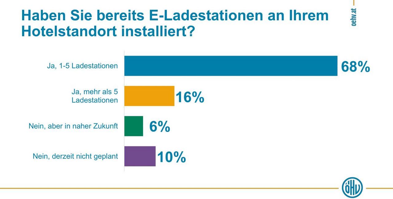 Die Bereitstellung von Lademöglichkeiten für Elektroautos entwickelt sich in der österreichischen Hotellerie zum Standard. Eine aktuelle Umfrage der Österreichischen Hotelvereinigung (ÖHV) zum Thema „E-Mobilität im Hotel“ zeigt, dass die Branche auf die steigende Zahl von Gästen mit Elektrofahrzeugen reagiert.