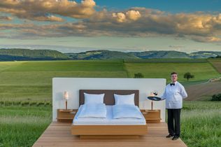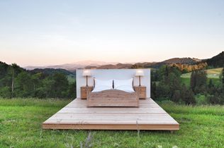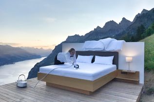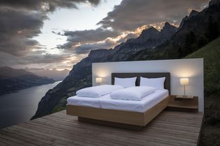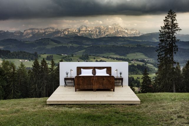 Sechs Ostschweizer Tourismusorganisationen und Liechtenstein haben wieder Betten in die Berge gestellt. Unter dem Namen «Zero Real Estate» werden ab Juli sieben Hotelzimmer ohne Wände und Dach eröffnet. Eine Übernachtung unter freiem Himmel, inklusive Butler-Service, kostet 295 Schweizer Franken.