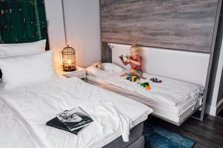 Ein weiteres Highlight sind die über 900 Türen aus Berliner Altbauten, die als Kopfteil der Betten umfunktioniert wurden. Die berühmtesten stammen aus dem ehemaligen Adelshotel, dem heutigen Cumberland Haus am Berliner Ku’Damm (ca. 1907) und dem Grand Hotel am Steinplatz Berlin Charlottenburg (ca. 1913).