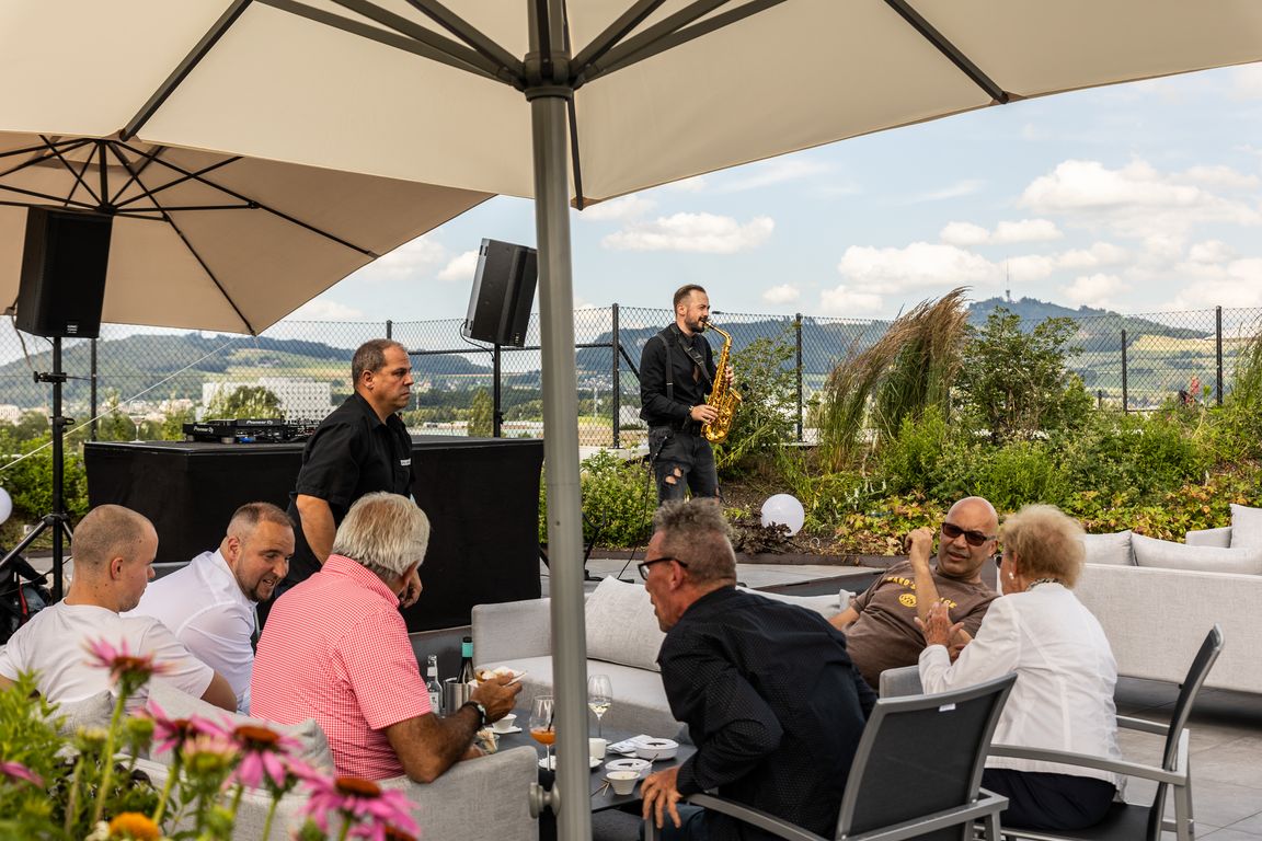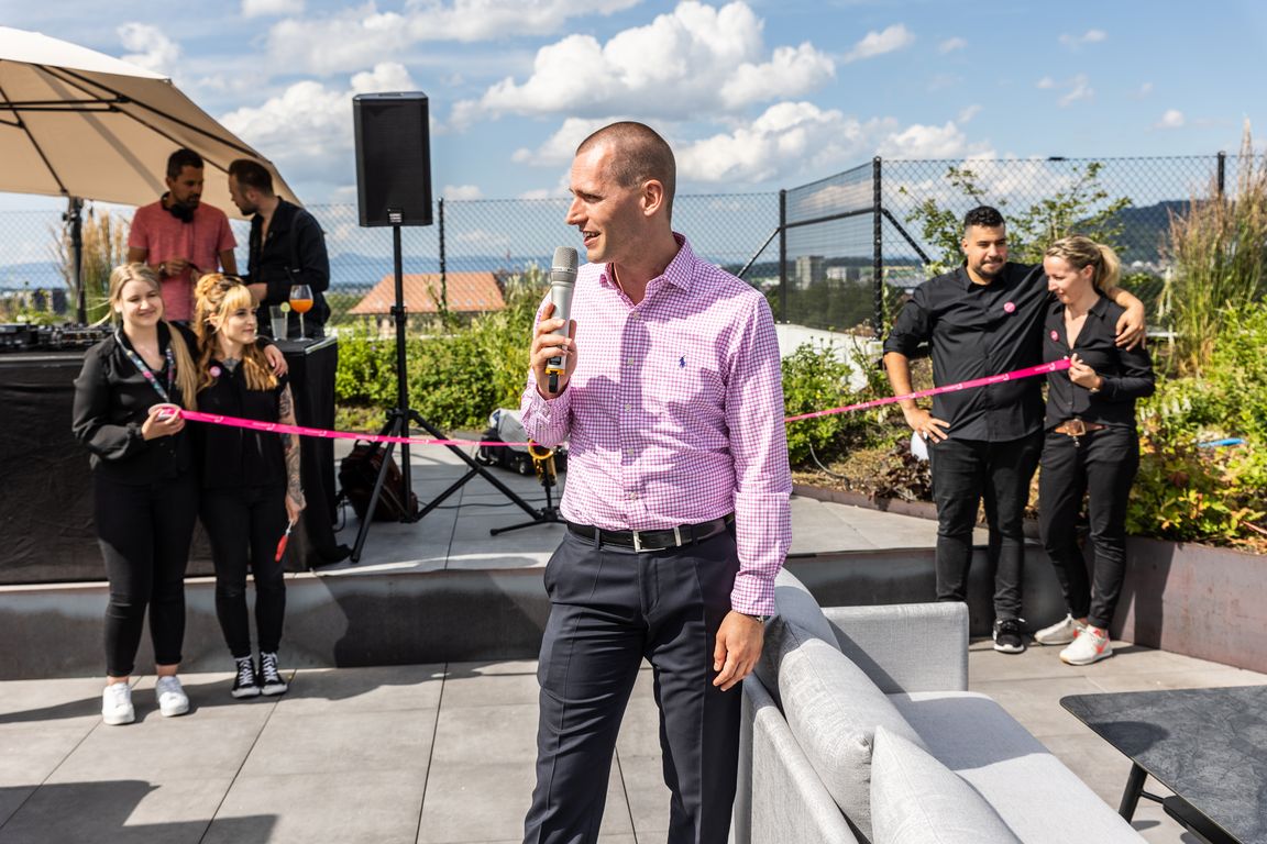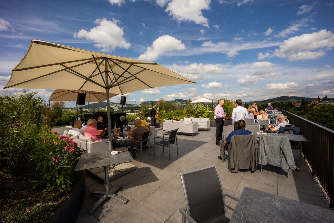 Da die Hotel-Eröffnung Anfang 2020 auf Grund der Corona-Lage nie offiziell gefeiert werden konnte, gab es heute zur Opening Party der Rooftop-Bar mit den Eigentümern der SPS (Swiss Prime Site AG), Partnern, Nachbarn und Pressevertretern nun doppelt Grund anzustoßen.
