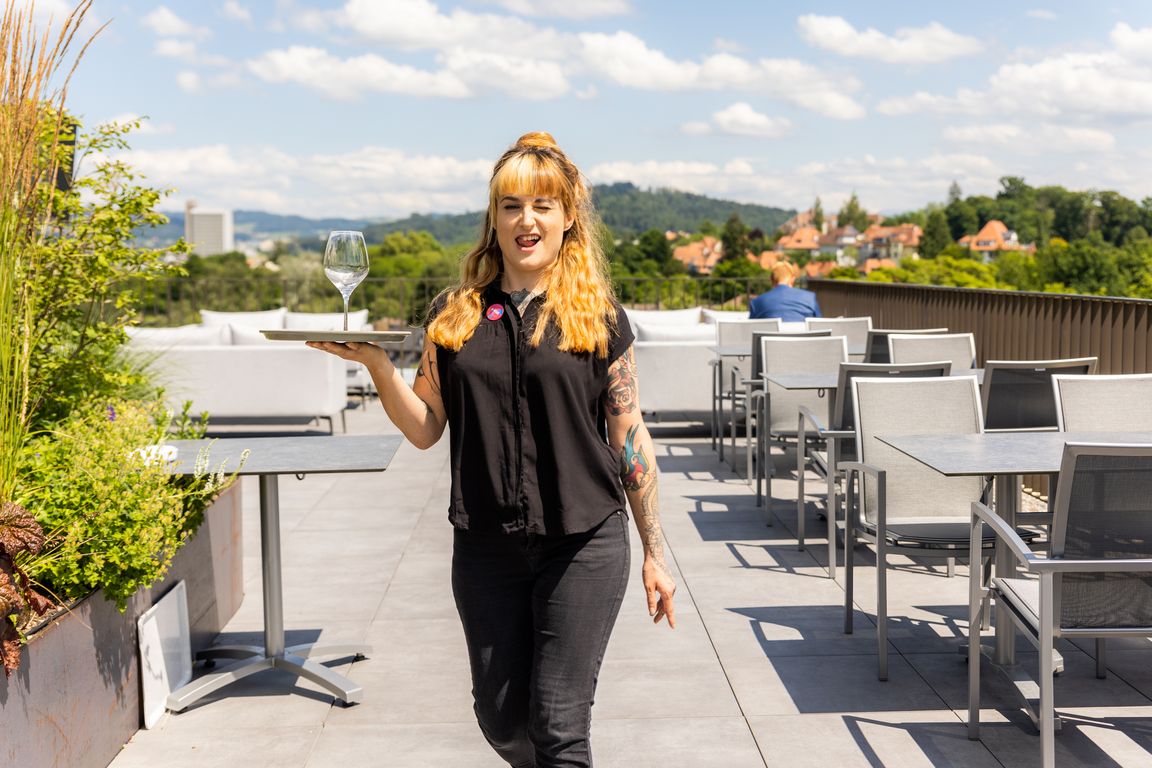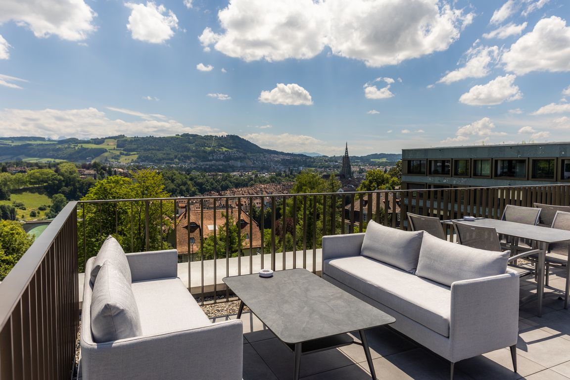 Ab dem 3. Juli 2021 startet nun auch der Bar-Betrieb auf der Dachterasse. Hotelgäste sowie externe Gäste sind ab sofort jeweils vom Nachmittag bis Abend um 22 Uhr willkommen. Neben Snacks und Getränken, lässt sich ein Blick über die Altstadt, die Aare und die Alpen genießen.