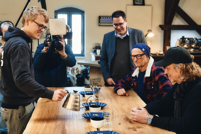 Den aufwendigen Prozess von der rohen Bohne bis zum fertigen, perfekt ausgewogenen Kaffee steuerte Christian Klatt, Inhaber der Union Rösterei in Bremen, mit seinem Team. Hierzu gehört auch Ansgar Pleye – er ist der National Coordinator der Specialty Coffee Association Deutschland und einer der führenden Kaffee-Experten in Deutschland.