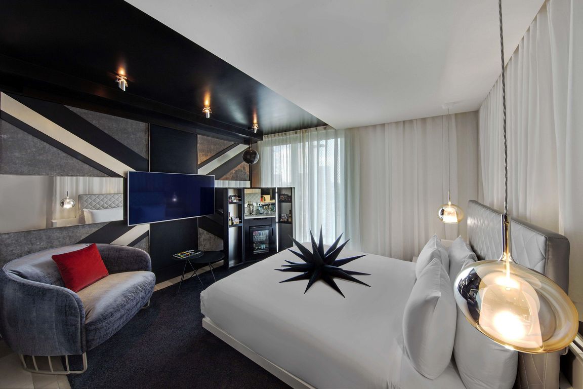 Die insgesamt 192 Zimmer, darunter 28 Suiten, erstrahlen in einem neuen, frechen Look. Dafür zeichnen das bekannte Architekturbüro Concrete und Krause Designverantwortlich. Zu den Besonderheiten zählen unter anderem gewagte Wände, Avantgarde-Möbel und atmosphärische Beleuchtung. Details in glänzendem Weiß, „fotofreundliche“ Spiegelwände und Diskokugeln runden den provokanten neuen Look ab.