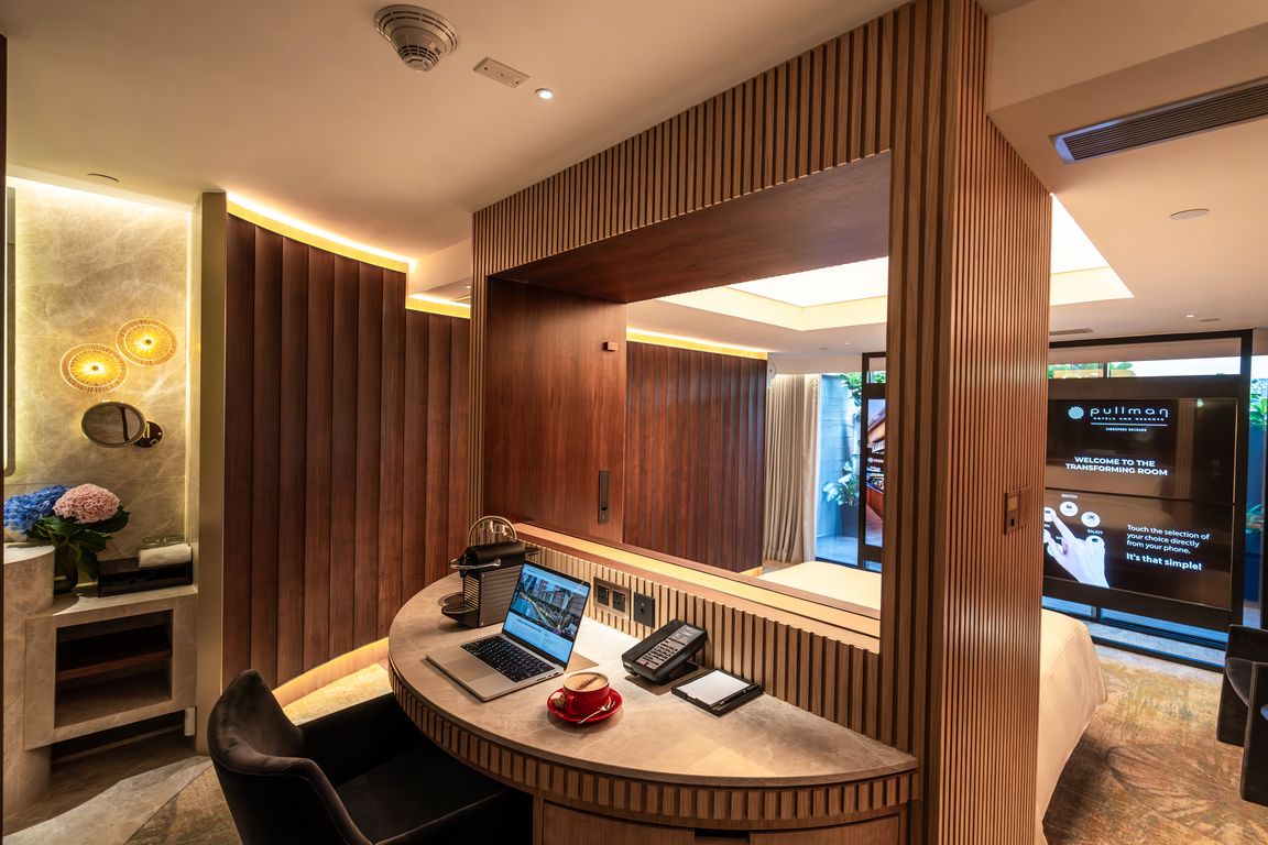 Umgesetzt wurde der Transforming Room nun als Pilotprojekt im Pullman Singapore Orchard. Die dort gewonnenen Erkenntnisse sollen eine tragende Rolle in der weiteren Entwicklung der Marke Pullman hin zu flexiblen und dynamisch gestalteten Hotelflächen spielen. Dem Leitgedanken von Pullman folgend, wurden die flexiblen Designlösungen mit Technologien verwoben. Dadurch entsteht ein multifunktionaler Raum, der eine Anpassung an die individuellen Bedürfnisse der verschiedenen Gästegruppen bietet.