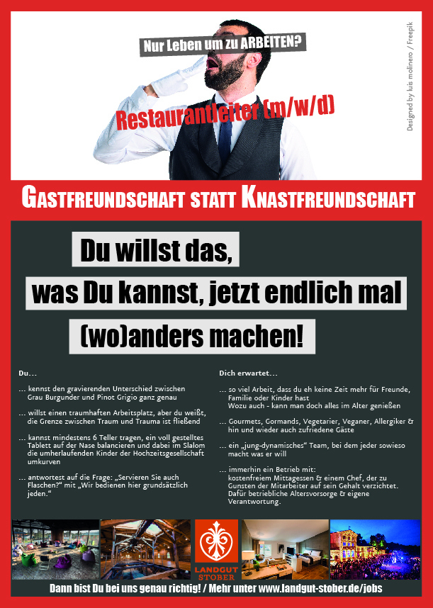 Um neue Mitarbeiter zu gewinnen, müssen sich Hoteliers heute einiges einfallen lassen. Gerade auf dem Land. Michael Stober vom Landgut Stober im Brandenburger Havelland kokettiert bei der Personalsuche bewusst und selbstironisch mit den Schwachstellen und Vorurteilen der klassischen Hotellerie – und sieht sich damit auf de Erfolgsspur.
