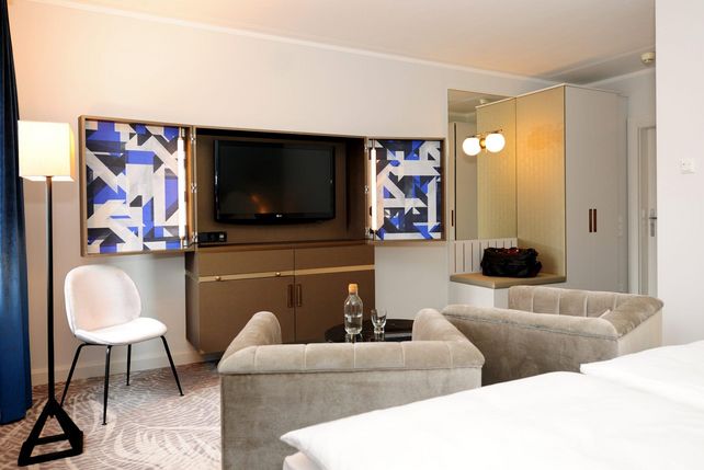 Das ließen sich die Geladenen nicht zweimal sagen. Von Garten, Bibliothek und Bar mit Weinkost über Wohnhalle und Lichtsaal bis hin zum Restaurant AnnA, erkundeten sie das Haus. Bei Livemusik der thüringischen Gypsy-Swing-Band Brise Manouche sowie einem geschmackssicheren Querschnitt durch die Speisekarte genossen die Anwesenden die stimmungsvolle Feier. Für elegante Überraschungen sorgte das Weimarer Kostümtheater „Gnadenlos Schick“ im Outfit der 1920er und 1930er Jahre. Nach interessanten Führungen durch das Haus und Blicken in einige der modernisierten Zimmer wurde bis weit in die Nacht geredet, getrunken, gelacht und getanzt. Damit machte sich das Hotel Elephant Weimar einmal mehr zum Ort der Inspiration, der offenen Begegnung und des Austauschs.