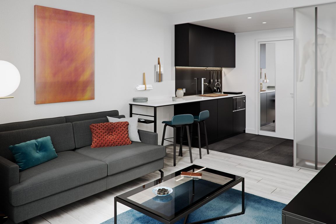 Die Studios und One-Bedroom-Suiten verfügen über jeweils einen separaten Wohn- und Schlafbereich sowie eine voll ausgestattete Küche. Teil des Designs sind Kunstwerke, die örtliche Sehenswürdigkeiten abbilden.