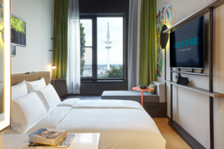 Im Reverb by Hard Rock Hamburg können die Gäste ihre Kreativität ausleben und gleichzeitig modernen Komfort genießen. Zusätzlich zu den Gemeinschaftsbereichen verfügt das Hotel über 134 Zimmer auf fünf Etagen, darunter 12 Suiten mit einer Größe von 30 bis 50 m2. Es gibt eine Mischung aus King-, Double-Queen- und Roadie-Bunk-Zimmern, die alle mit stilvollen, komfortablen Möbeln, von Fans inspirierten Kunstwerken, Arbeitsbereichen und Bädern mit hochwertigen Toilettenartikeln ausgestattet sind. Das Roadie-Bunk-Zimmer verfügt über zwei Etagenbetten und ein Queensize-Bett, zwei eigene Bäder, eine Karaokemaschine und übergroße Smart-TVs.