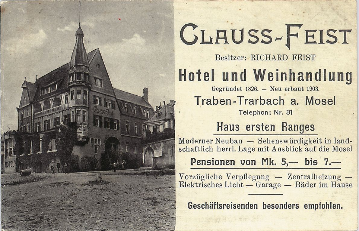 Nach einem Großbrand im Jahr 1901 wurde der ehemalige Gasthof unter der Leitung von Richard Feist und mit dem Architekten Bruno Möhring im Jahr 1903 als "neues" Hotel Clauss-Feist wiederaufgebaut. Matthias Ganter übernahm 1992 die Leitung des Hotels und erweiterte es 2000 durch den Beitritt zur Romantikhotels-Kooperation. Im Jahr 2021 erfolgte die Eröffnung des Neubaus Palais Kayser mit zehn Suiten.