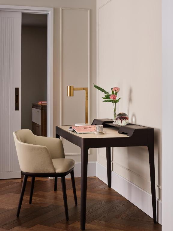 Beim Betreten der Hotellobby werden die Gäste von den stilvollen Relikten des ehemaligen Bankgebäudes begrüßt. Dazu gehören die eindrucksvolle Treppe, die gewölbte Decke und anmutige Fresken, die im Zusammenspiel ein einzigartiges und evokatives Ambiente entstehen lassen.