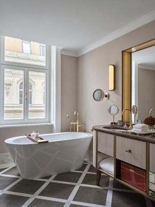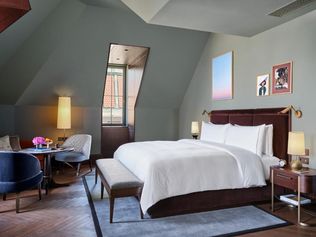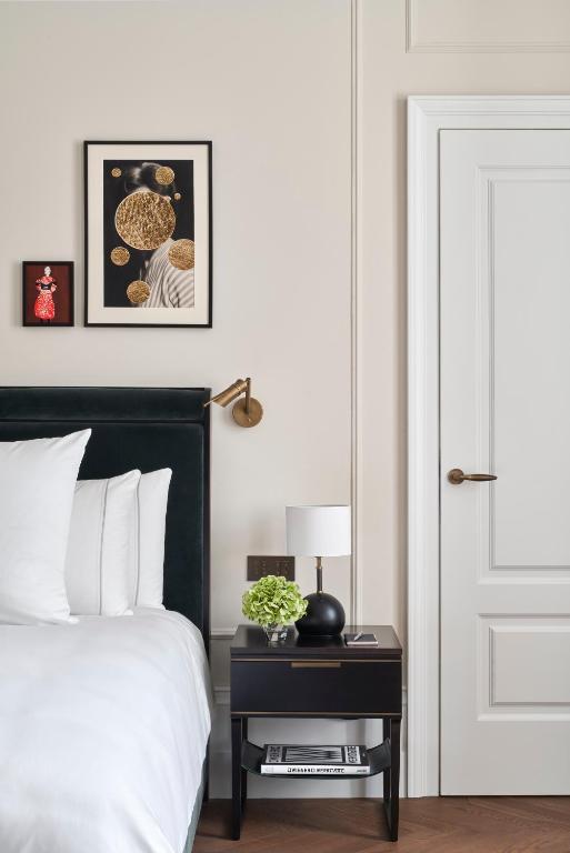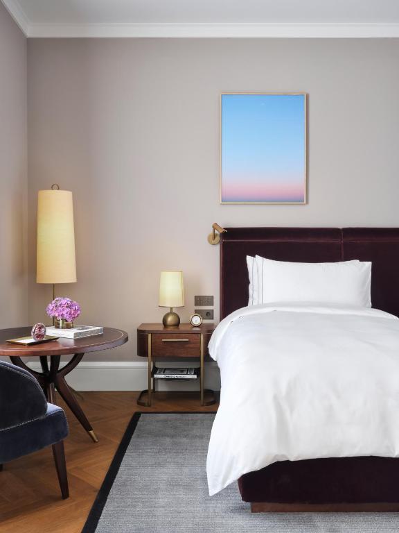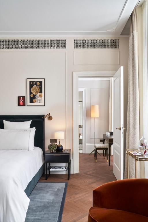 Innenarchitekt Alexander Waterford hat für die 71 Gästezimmer und 28 Suiten, die sich über vier der sieben Etagen des Hotels erstrecken, einen warmen Wohnstil entworfen. Die Gästezimmer schwelgen im Erbe der Hauptstadt und spiegeln ihren Designstil wider. Maßgefertigte Möbel zeugen von Qualität und Komfort, wie die Minibar aus Walnussholz, Leder und grauem regionalen Marmor oder der Badezimmer-Waschtisch. Stoffe der 1849 gegründeten Firma Backhausen, die für ihre Wiener Jugendstilmuster bekannt ist, schmücken Vorhänge und Stühle, Taschentuchboxen und Notizblöcke. In Zusammenarbeit mit der Kunst-Agentur Atelier27 wurden Werke von internationalen Künstlern in Auftrag gegeben, darunter Illustrationen, Archivfotografien mit Blattgolddruck, Fotografien, Papierschnitte, Lithografien und Wandskulpturen.