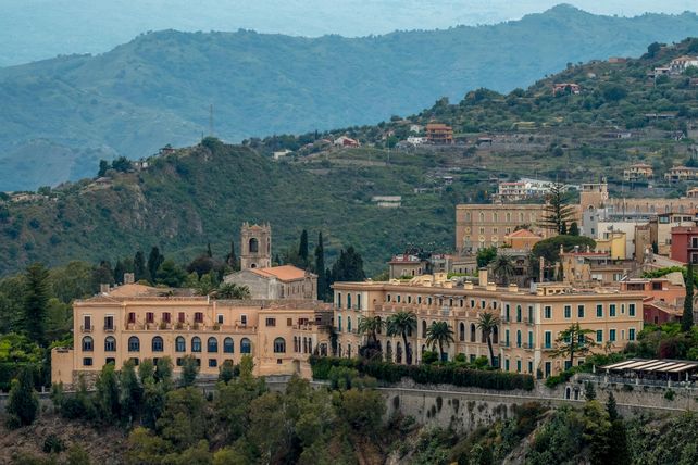 Das Hotel ist in den historischen Wänden eines alten Dominikanerklosters aus dem 15. Jahrhundert zu Hause, sowie in einem Grand Hotel Flügel, der seit 1896 das Gebäude ergänzt. Die Gästezimmer sowie die öffentlichen Räume weisen Originalarchitektur und Fassaden des historischen Baus auf. Als eines der berühmtesten Hotels der Welt bekannt, hausierten hier bereits namhafte Gäste wie Oscar Wilde, Elizabeth Taylor oder DH Lawrence. Eingebettet in die idyllische Landschaft Siziliens, ist die Stadt Taormina auch für ihre zahlreichen historischen Sehenswürdigkeiten, darunter ein altgriechisches Theater und den mittelalterlichen Corvaja-Palast bekannt.