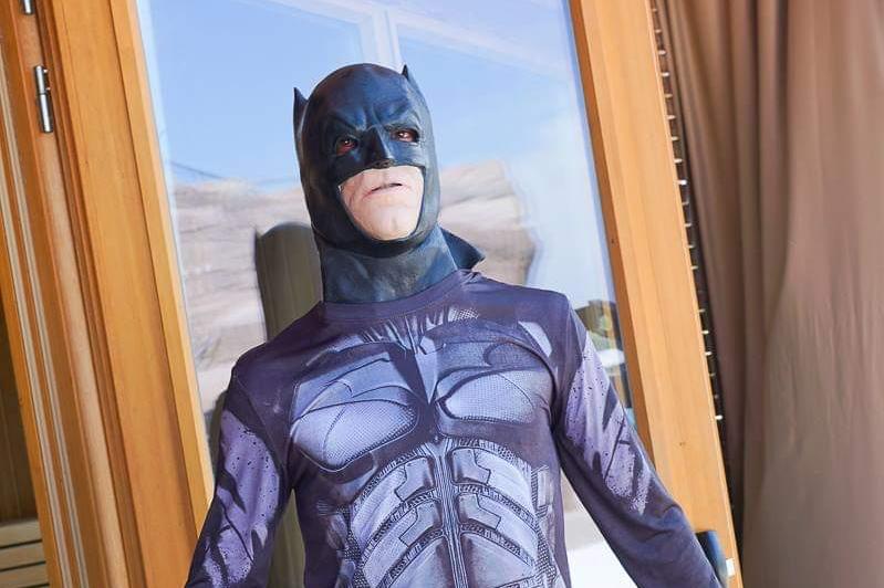 Claudio Massa betritt verkleidet als junger Bruce Wayne im schicken Smoking die Sauna alias seine Bühne. Die heiße Show beginnt und der erste Aufguss erfolgt mit entspannendem Waldkiefer-Öl. Es läuft „Die Zauberflöte“, als plötzlich zwei Schüsse widerhallen. Die Eltern von Bruce wurden bei einem Theaterbesuch ermordet. Bruce ist voller Wut, die Musik passt sich an. Schließlich kommt Massa in einem Mönchskleid wieder auf die Bildfläche.