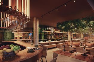Im Frankfurter Ostend eröffnet im Januar 2023 das zweite Scandic Hotel am Main. Als stilistisches Highlight wurde die Umgebung ins Interior integriert: Der direkt neben dem Hotel liegende Hafenpark setzt sich optisch im Inneren fort, sodass drinnen und draußen fließend ineinander übergehen.