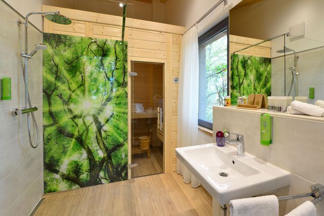Die Baumhäuser bieten jeweils zwei Chalets, die teilweise miteinander zu kombinieren sind. So können auch Familien und Gruppen in luftiger Höhe übernachten. In den Luftschloss-Chalets finden sich neben Boxspringbetten auch Hochbetten für die Jungen und Junggebliebenen. Das Thema Wipfelglück bietet eine integrierte Sauna und ein Hot Tub auf der Terrasse. Weitere Themen sind Traumzeit, Waldgeflüster und WaldArt.