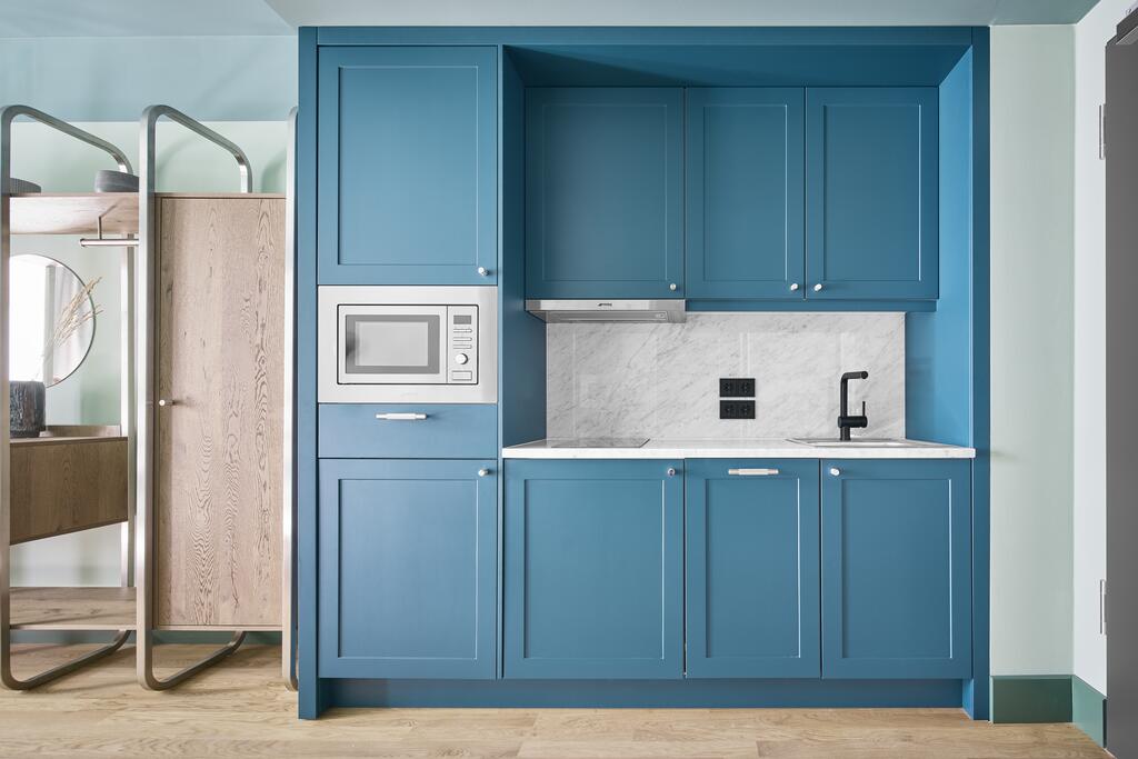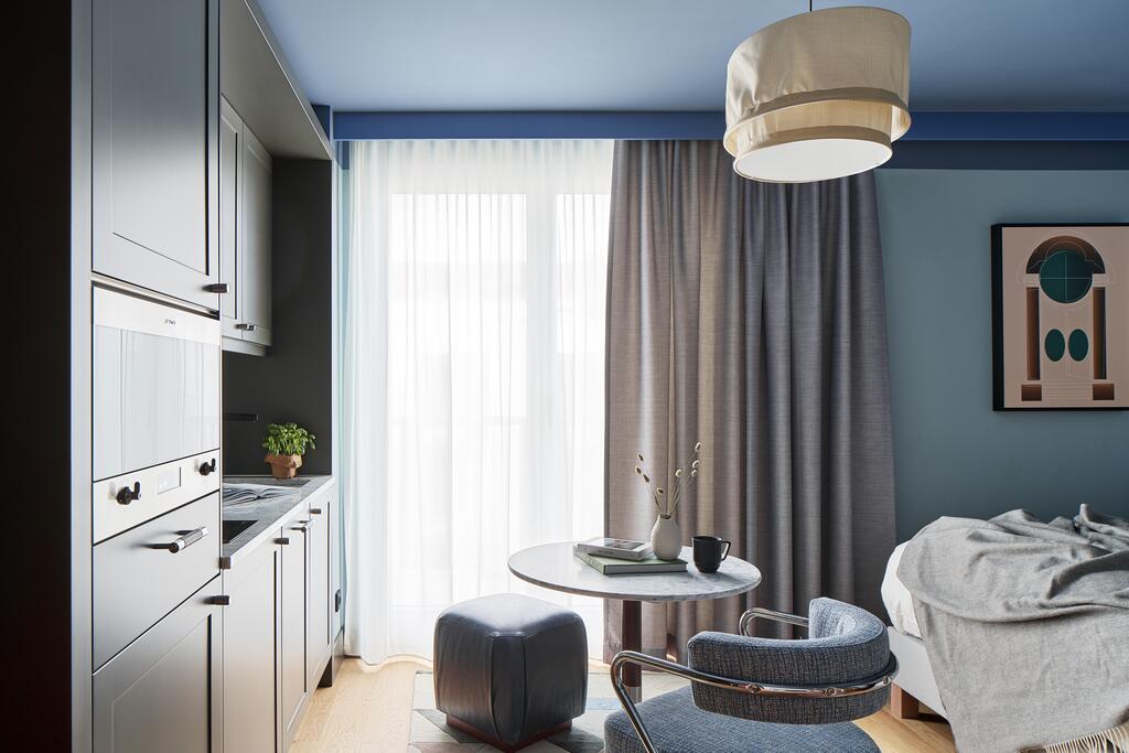 Jedes der charakteristischen Studio-Apartments bietet mitsamt voll ausgestatteter Küche, Wohn- und Essbereich mehr Platz als ein typisches Hotelzimmer. Das vom Innenarchitekturbüro Fettle entworfene Design des Schwan Locke ist vom Deutschen Werkbund inspiriert, der Anfang des 20. Jahrhunderts in München gegründet wurde. Der Werkbund ging davon aus, mittels hochkarätiger angewandter Kunst die Lebensqualität im Alltag verbessern zu können, und verfolgte demgemäß das Ziel, durch die gezielte Verschmelzung von traditionellem Handwerk und industrieller Massenproduktion ästhetische Standards neu zu definieren.
