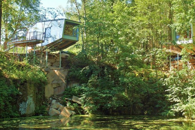 Durch die Kombination aus unbehandeltem Naturholz und tiefen, großzügigen Glasfronten, scheinen die Häuser der Baumhaus Lodge in Schrems geradezu in den Kronen der Bäume zu schweben. Innen finden Reisende eine moderne und stilvolle Einrichtung vor. Warme Farben bilden den Kontrast zum alten Granitsteinbruch, der das Hotel umgibt. Durch den einmaligen Ausblick kommen Naturfans voll auf ihre Kosten. Aber auch für Frischverliebte, die möglichst viel Zweisamkeit genießen wollen, ist die Baumhaus Lodge der perfekte Ort: So wird zum Beispiel das Frühstück ans Bett gebracht.