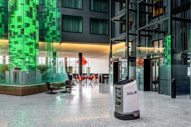 Jeeves kümmert sich ab sofort auch um die Gäste des Radisson Blu Hotel, Zurich Airport. Der Serviceroboter liefert Gästen Getränke, Snacks, Gerichte wie Burger, Pizza und Salat sowie andere Produkte kontaktlos bis an die Zimmertür und unterstützt damit das Hotel-Team in ihrer täglichen Arbeit. Das Münchner Technologieunternehmen Robotise weitet mit der Inbetriebnahme des Roboters seinen Service erstmals in die Schweiz aus. Im Radisson Blu Hotel, Zurich Airport kommt die neueste Version des Helfers zum Einsatz.