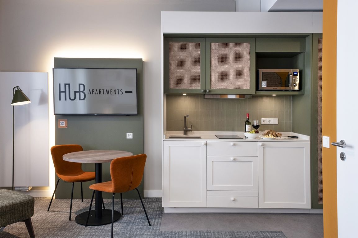 Der Betreiber setzt am Standort St. Georg auf eine weitgehend digitale Abwicklung des Aufenthalts. Den Gästen stehen ein Online-Check-in und -Check-out sowie ein digitaler Schlüssel zur Verfügung. Eine Rezeption ist zwar vorhanden, der Fokus liegt jedoch auf der Automatisierung der Prozesse. „Die Marke ‚Hub Apartments‘ vereint modernen Wohnkomfort mit digitalem Gästeerlebnis und ist dabei im Budgetsegment positioniert“, erläutert Geschäftsführer Franco Esposito.