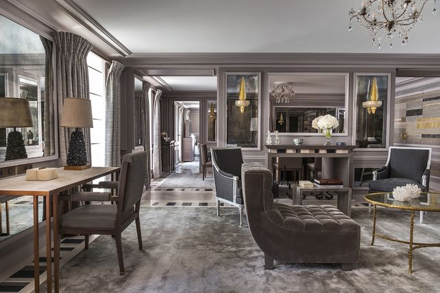 Die Grands Appartements bieten einen Blick auf Paris und die Sehenswürdigkeiten wie den Eiffelturm, den Grand Palais, das Musée d'Orsay und den Place de la Concorde. Die Suiten wurden von Modedesigner Karl Lagerfeld entworfen, um seine persönliche Vision von französischem Chic und Modernität zu interpretieren. Jedes der Grands Appartements verfügt über maßgeschneiderte Möbel, die von Lagerfeld entworfen wurden.