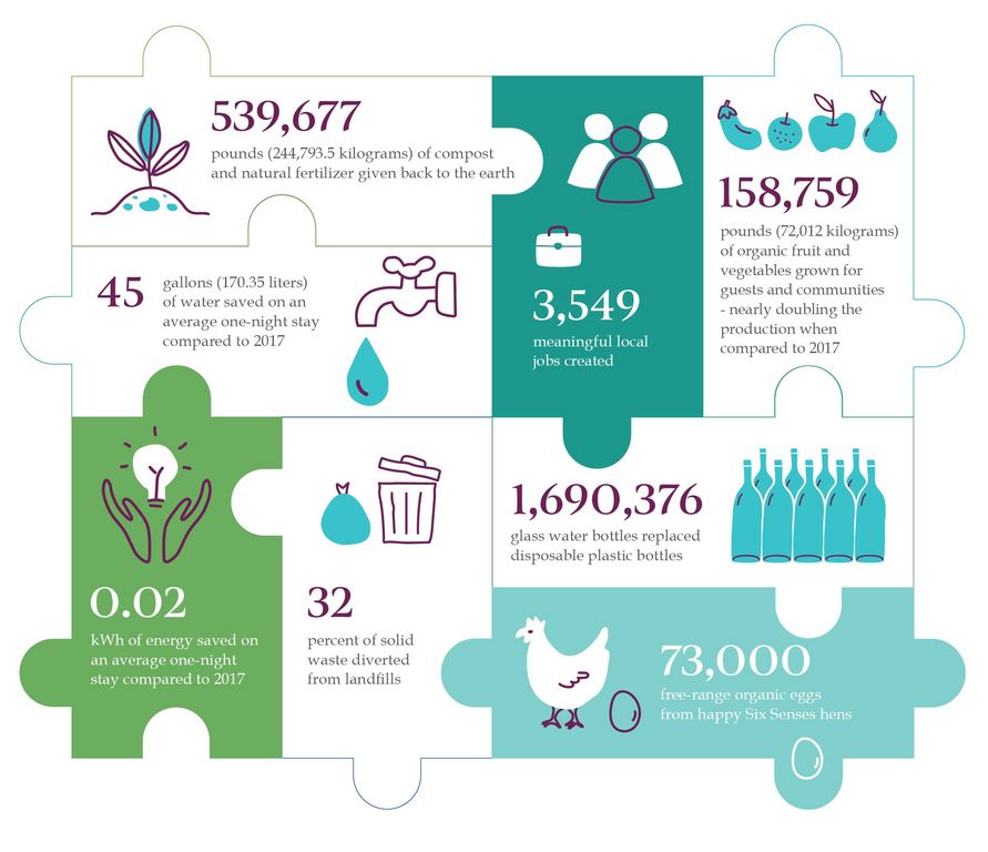 Wie das Unternehmen nun mitteilte, überprüfen alle einzelnen Six Senses Destinationen ihren Beitrag zum Umweltschutz sowie deren Unterstützung der Bevölkerung unter Aufsicht des Nachhaltigkeitsbeauftragten Jeff Smith. Smith sagt: „Auf einem Planeten, der nur begrenzte Ressourcen hat, wächst die Tourismusbranche rapide an. Das bedeutet, dass alle Verantwortlichen der Hotelindustrie gemeinsam etwas tun müssen, um eine nachhaltige Lösung und messbare Ergebnisse zu erzielen. Unsere Firmenethik in Bezug auf Wellness und Gesundheit verschafft unseren Gästen ein besseres Wohlbefinden. Es ist also sinnvoll, ihnen durch unsere Umweltpolitik auch bei der Wahl ihres Urlaubs ein gutes Gefühl zu geben.“