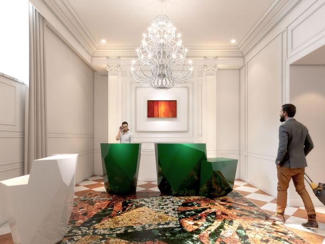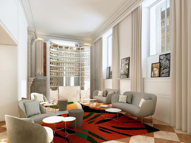 Auch in Jean Philippe Nuels Design ist das italienische „Dolce Vita“-Gefühl präsent. So zieren den Hoteleingang auffällige Farbakzente, die eine moderne Lounge mit klassischem Ambiente zaubern, während die Decken der Gästezimmer von Meisterwerken geschmückt sind, welche die Illusion eines Himmelsgewölbes entstehen lassen.