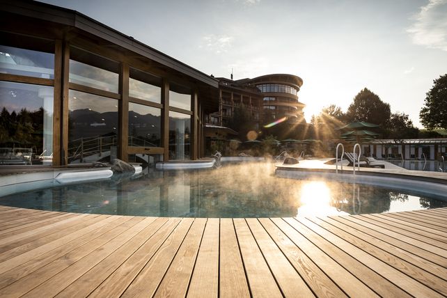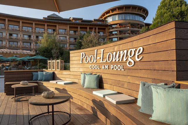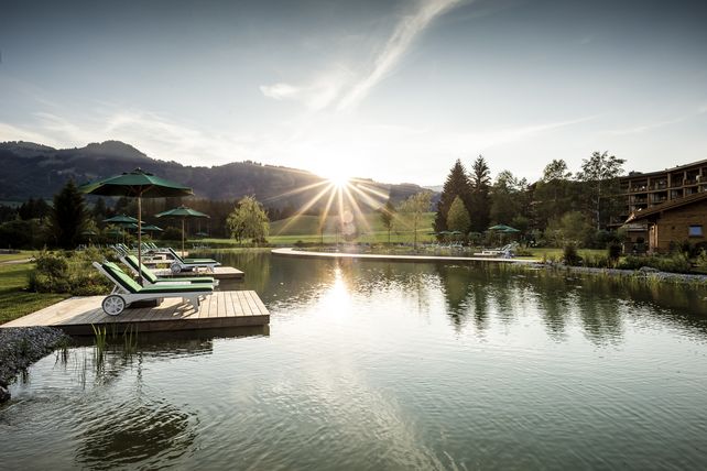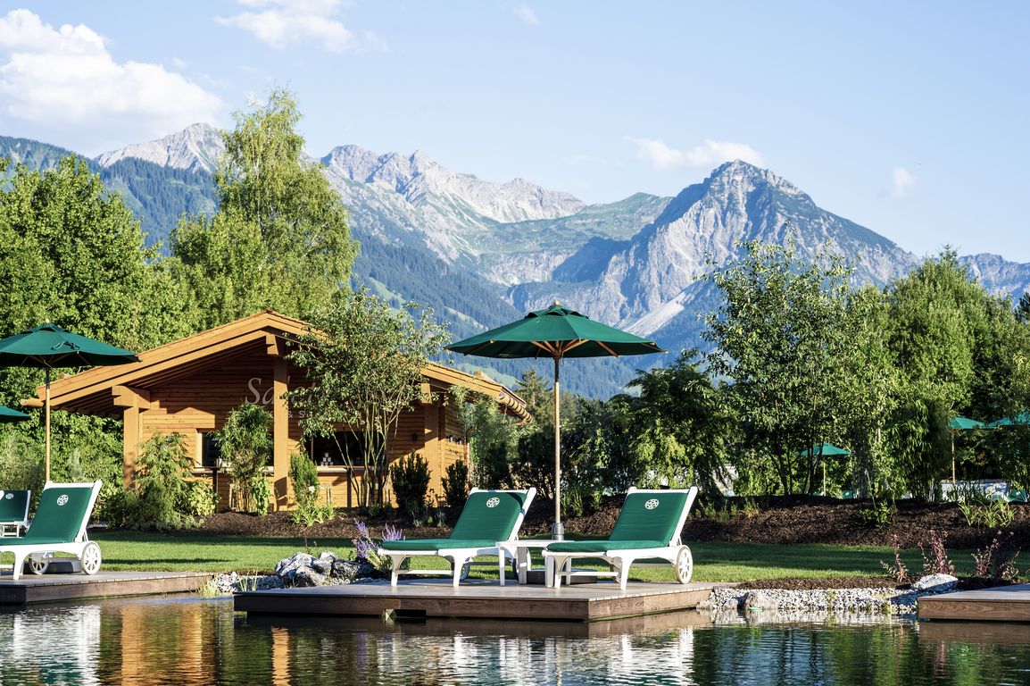 Der Fokus des neuen Outdoor-Wellnessangebots liegt auf den Themen Natur und Freiraum in alpiner Umgebung. Höhepunkt ist der eigens angelegte Bergsee mit Quellwasser. Sieben Pools, darunter ein Außenpool, Sprungpool, Sportpool, Naturpool, drei Whirlpools und ein weiterer Natursee, der Seerosenteich, stehen ebenfalls zur Verfügung. Auf einem breit angelegten Holzsteg flanieren Gäste über den See und lassen sich auf einem der sieben Sonnendecks direkt am Ufer nieder. Zu Yogasitzungen oder Aktiveinheiten lädt das eigens geschaffene Yogadeck am Bergsee ein. Warm wird es in der Panoramasauna sowie der Blockhaussauna im Natur-Spa.