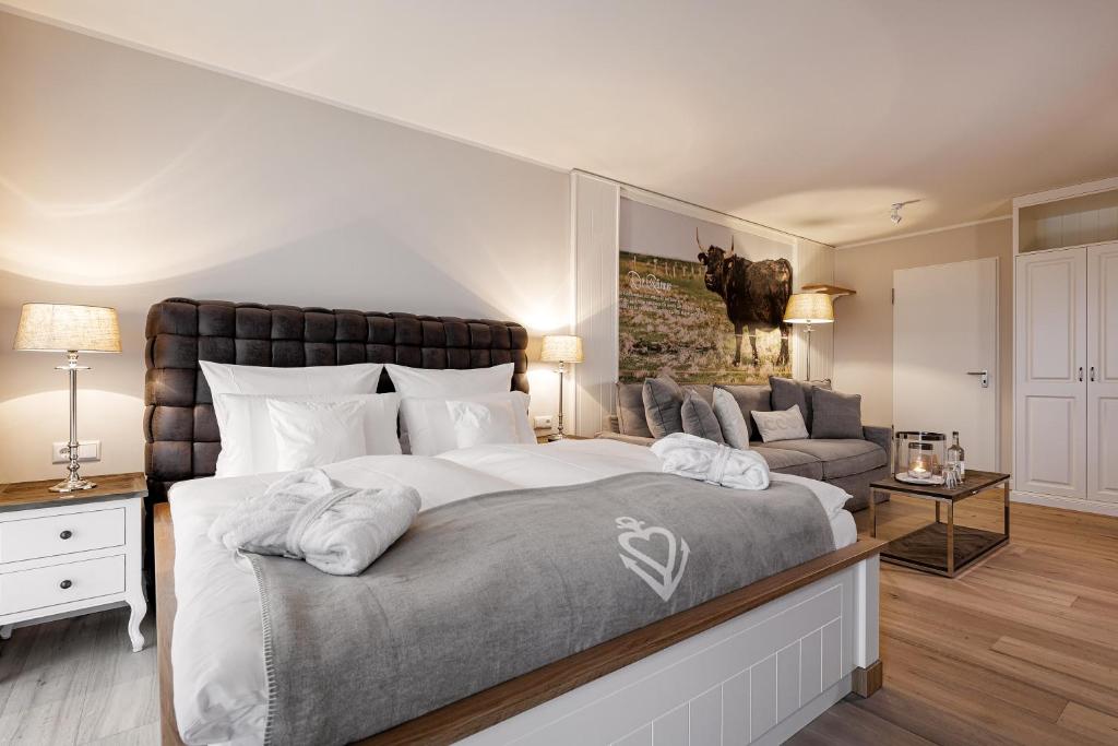 Dazu gibt s 22 neuen „Stuben“, die in den beiden oberen Etagen untergebracht sind. Sie sind mit 84 Quadratmetern besonders groß gestaltet. Mit Extras wie einer eigenen Sauna und Whirlwanne, einem gemütlichen Wohnzimmer sowie einem oder sogar zwei separaten Schlafzimmern, sind Schlechtwettertage kein Problem mehr.