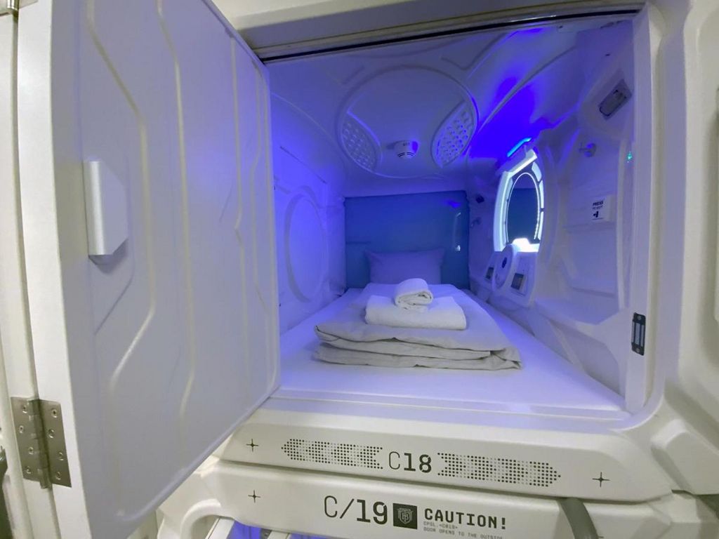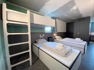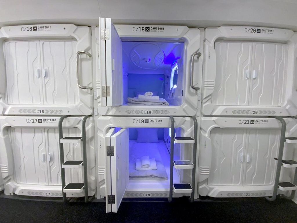 Die Hostelzimmer sind als Tiny-Zimmer konzipiert, um kostengünstige Übernachtungsmöglichkeiten zu bieten und richten sich hauptsächlich an Einzelpersonen. Es gibt vier barrierefreie Doppelzimmer und zwei barrierefreie Dreibettzimmer. Der Bereich mit den 30 Kapseln befindet sich im Untergeschoss, wo das Herz der Raumstation schlägt. Alle Schlafmöglichkeiten sind für Aufenthalte von einer Nacht bis zu drei Monaten buchbar, und Studierende profitieren von speziellen Konditionen.