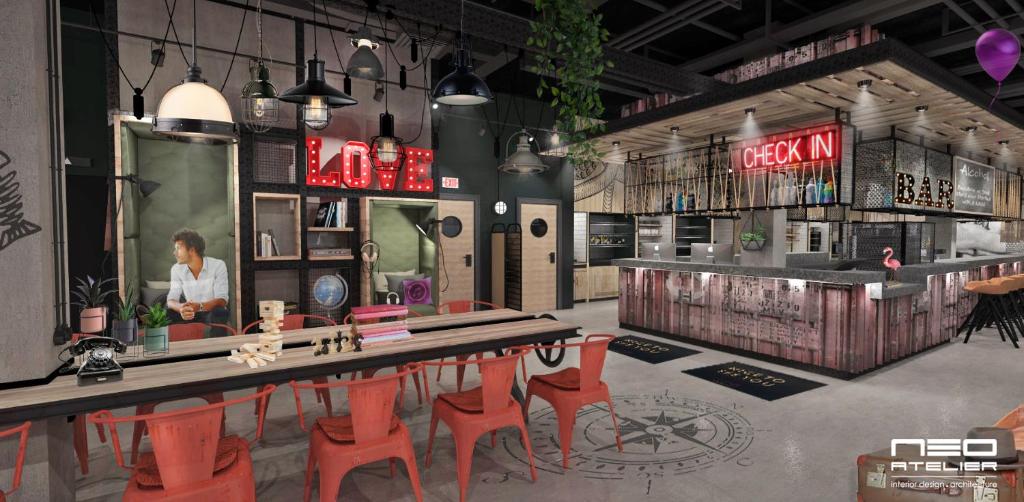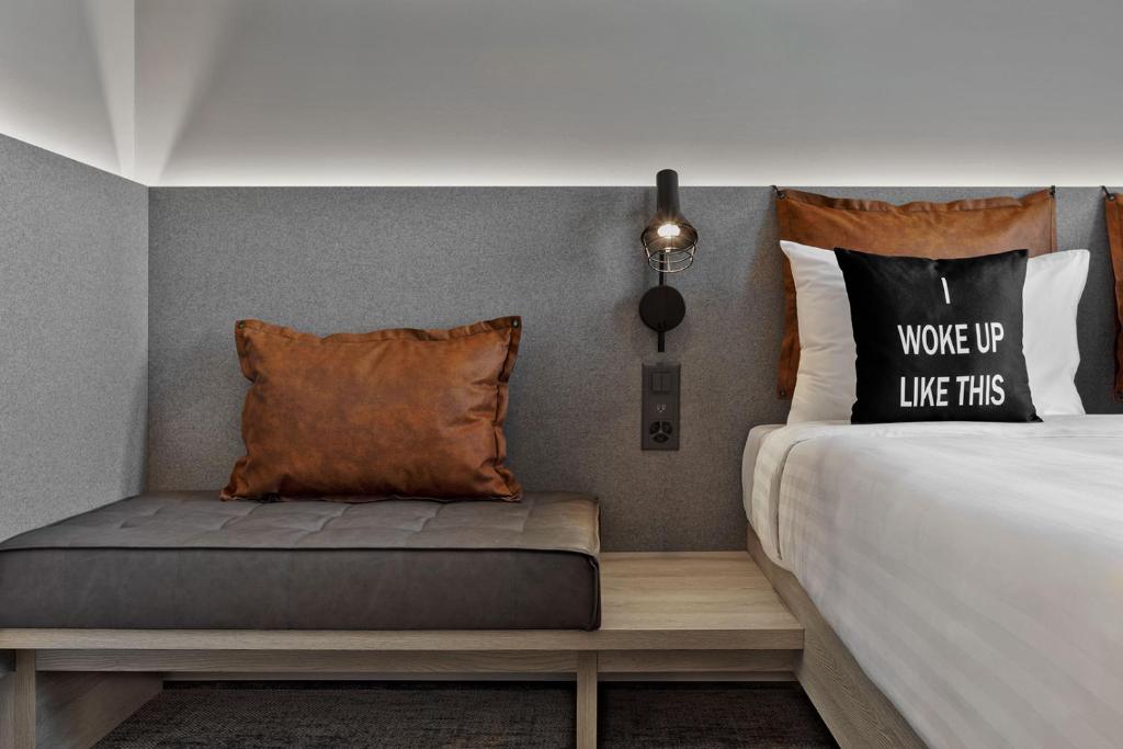 Architektonisch sind die Linien beim Moxy in Bremen ebenfalls klar: es gibt entweder Moxy Sleeper mit einem Queensize-Bett oder Double Moxy Sleeper mit zwei Twin-Betten. Bad, Dusche, ein bequemes Bett, kostenloses Highspeed-WLAN, Flachbild-TV – alles da. Und natürlich ein Fitnessbereich. Alles, was Reisende heute suchen. Und wem es auf seinem Zimmer zu einsam ist, der geht in das Herzstück des Hotels – die Lobby. Diese ist vielmehr als ein Empfangsbereich – sie ist gleichzeitig gemütliche Bibliothek, Bar und Lounge mit Musik. Das Vier-Zonen-Konzept ist typisch für Moxy. Der Bereich bietet viel Platz, um sich zu vernetzen, sei es im Austausch mit anderen Gästen oder mit der Crew.