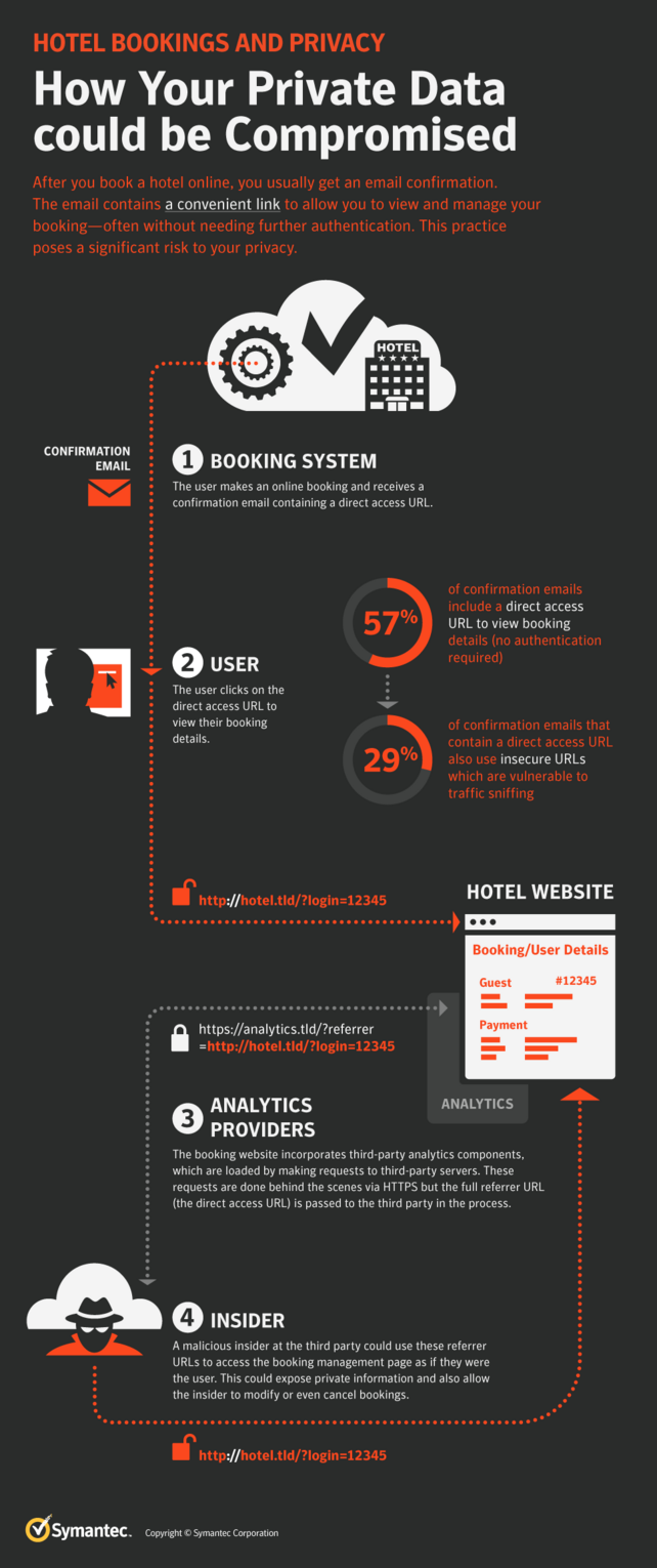Laut einer aktuellen Untersuchung von Symantec soll es auf zwei von drei Hotelwebseiten Probleme mit dem Schutz der Gästedaten geben. Wie der Analyst Candid Wueest herausfand, würden 67 Prozent der untersuchten Seiten Daten an Drittanbieter wie Werbekunden oder Analyseunternehmen weiterleiten