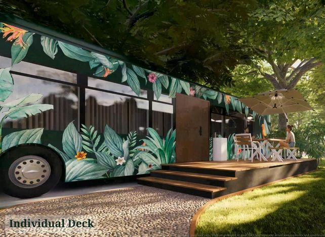 Auf 45 Quadratmetern können in jedem Bus drei bis vier Gäste schlafen. Zudem gibt es speziell ausgestattete Zimmer für ältere Menschen und für Menschen mit Behinderungen. Obwohl alle Fahrzeuge komplett renoviert wurden, sind einige charakteristische Merkmale aus ihrer Zeit auf den Straßen Singapurs erhalten geblieben - so etwa das Lenkrad und der Fahrersitz.