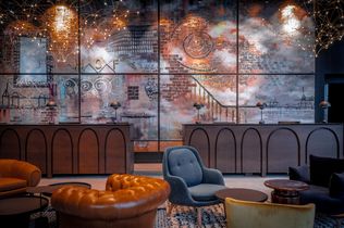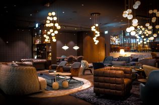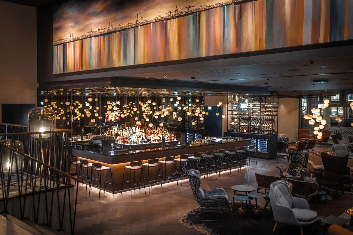 Die Lobby erstreckt sich mit ihren imposanten hohen Decken über zwei Ebenen. Direkt an der Rezeption fällt das Augenmerk auf ein 4x8 Meter großes Kunstwerk der Performancekünstlerin Jeannine Platz. Sie hat die Energie der Hansestadt eingefangen und porträtiert in ihrer Kunst eine farbenfrohe Hafenkulisse und deren Details. Neben der Rezeption findet sich zudem der erste „Concept Store“ der Marke. Hier können Gäste eine Auswahl an Mitbringseln und Design-Highlights erwerben.