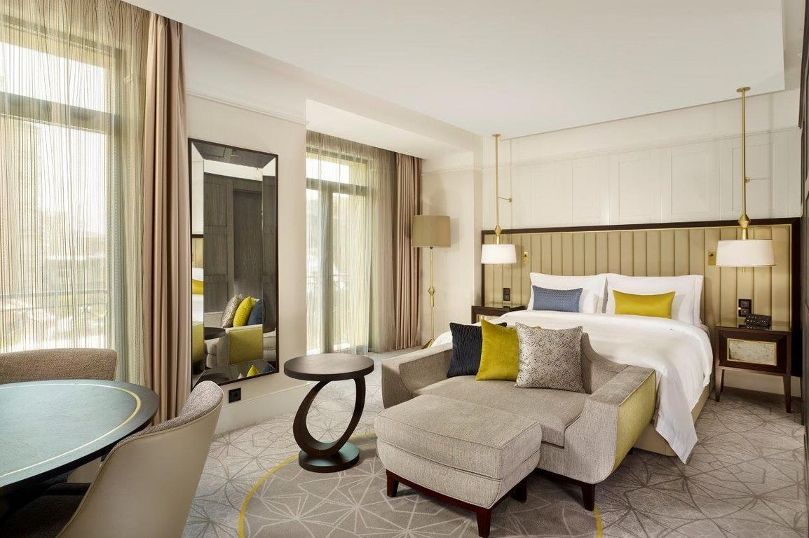 Unter den 114 Gästezimmern und Suiten, von denen die meisten über einen Balkon verfügen, sticht die prächtige Präsidentensuite besonders hervor: Sie erstreckt sich über eine komplette Etage und nimmt dort insgesamt knapp 158 Quadratmeter ein. Nicht weniger eindrucksvoll präsentiert sich der Alexander Spa by Anne Semonin, eine einladende Wellness-Oase mit individuellen Behandlungsangeboten. Ebenfalls zum Hotel gehören ein top ausgestattetes Fitnesscenter, ein Full-Service-Beautysalon sowie der erste Innenpool der Stadt, von dem aus sich ein atemberaubender Blick auf den schneebedeckten Gipfel des Ararat eröffnet.